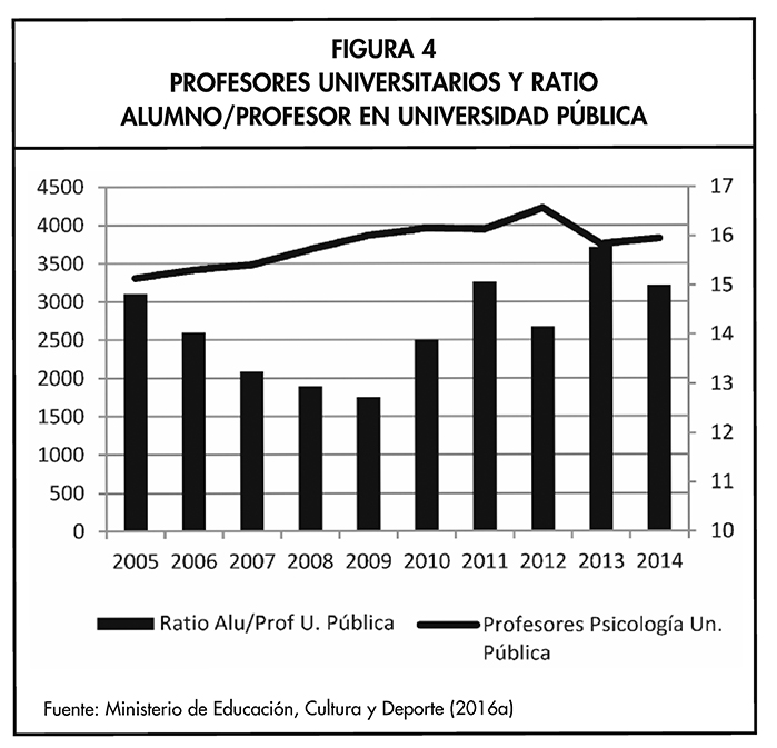 Para valorar el nivel de aplicación de las medidas propuestas en el Libro Blanco se analiza la evolución de las variables que dieron lugar a las mismas entre los cursos académicos 2005-06 y 2015-16. En este sentido, se tienen en cuenta: a) el número de centros donde se imparte el Grado de Psicología en España; b) el número de matriculados y egresados en Psicología procedentes de estos centros; c) el número de profesores universitarios y la ratio profesor-alumno en las universidades públicas; d) la ratio de alumnos matriculados por egresados; y e) los demandantes de empleo como psicólogo según organismos oficiales.