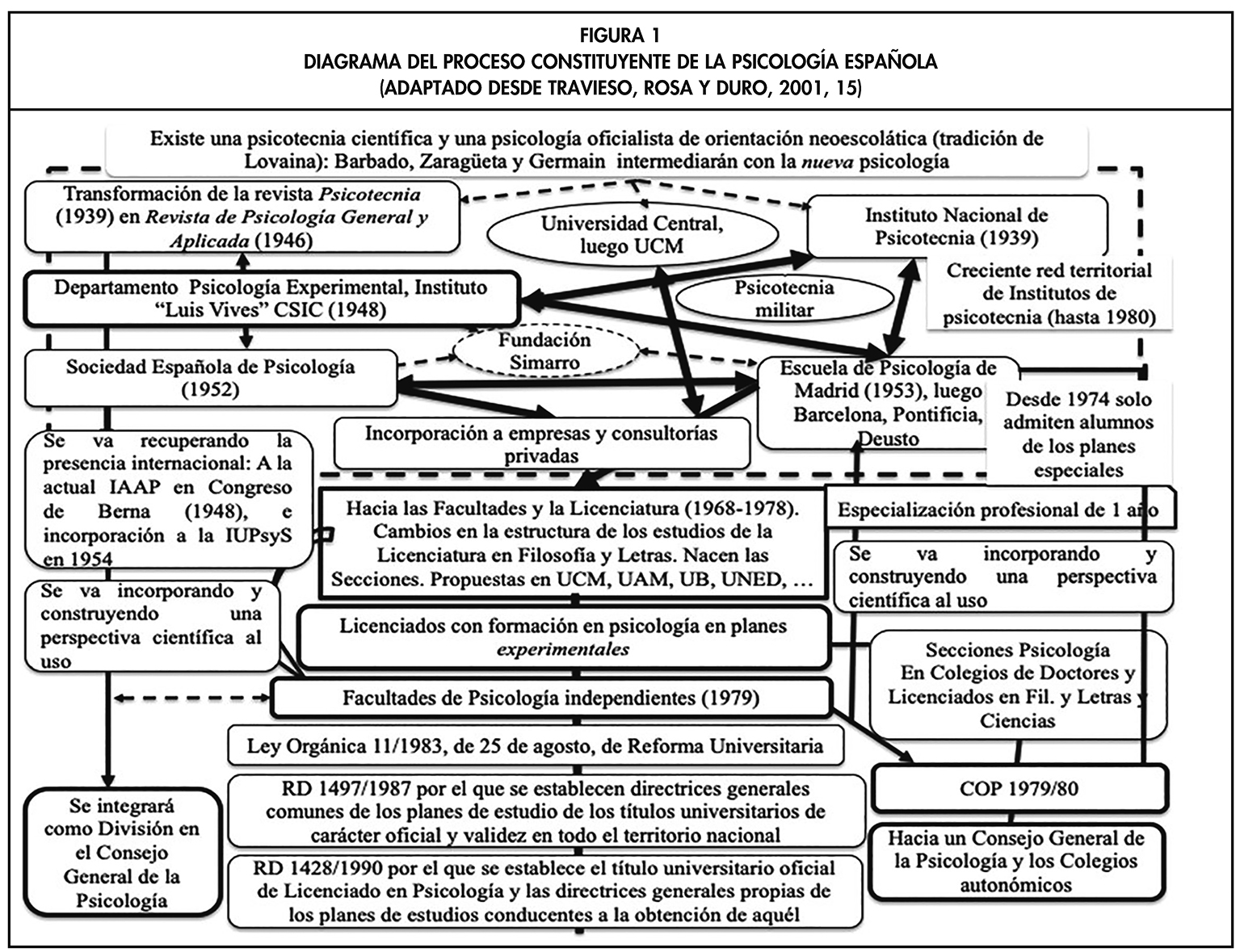 DIAGRAMA DEL PROCESO CONSTITUYENTE DE LA PSICOLOGÍA ESPAÑOLA (ADAPTADO DESDE TRAVIESO, ROSA Y DURO, 2001, 15)