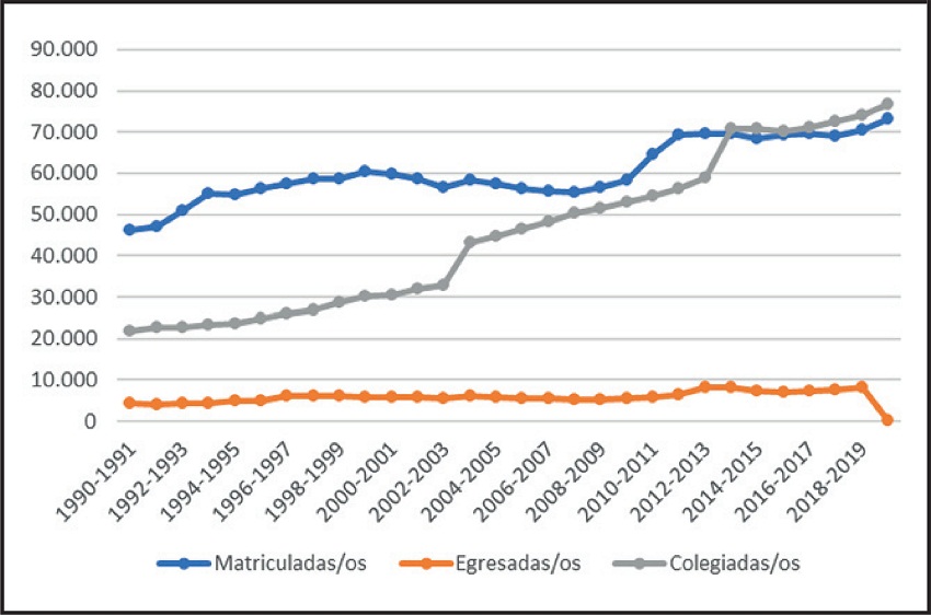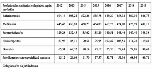 130.000 estudiantes egresaron durante el siglo XXI, con una media de 63.000 matriculados. 7.796 egresadas/os del Master PGS entre el curso 2014-2015 y 2018-2019. Casi 77.000 colegiadas/os¡¡ No obstante, continúa presentando una de las tasas más bajas de colegiadas/os no jubiladas/os por 100.000 habitantes (69,71) entre los grupos de profesionales sanitarios, lejos de los de 481,18 y 566,75 de las/los profesionales de la medicina y la enfermería (Tabla 5), y 162 colegiadas/os por 100.000 de población. Son 33.209 psicólogos con especialidad sanitaria en 2019 (Anónimo, 2020b), un 44,75% de los colegiados, pero estamos de acuerdo con Duro (2021) en que existe un “galimatías cuantitativo” respecto del número de profesionales sanitarios activos cuando atendemos a sus perfiles de incorporación37.