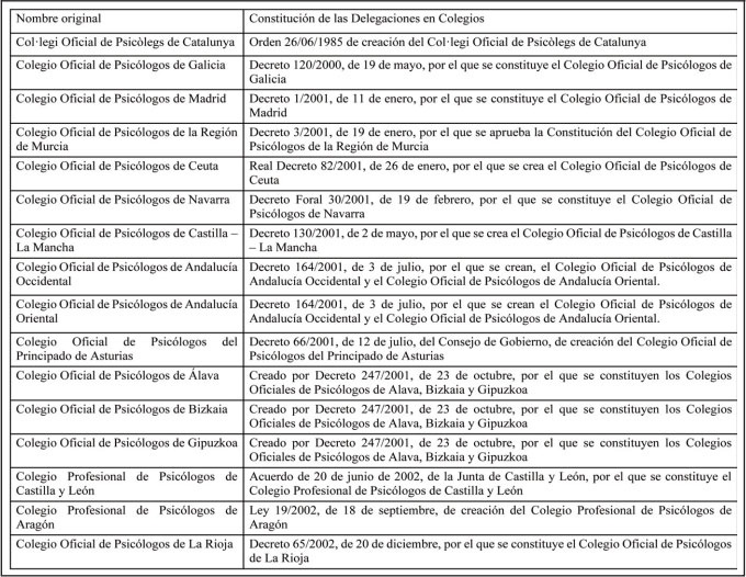 La primera década del nuevo milenio estaría repleta de cambios y esfuerzos adaptativos. Un primer reto fue la transformación descentralizadora del Colegio (Tabla 1). La Junta de Gobierno, de conformidad con lo establecido en el artículo 21 de sus Estatutos, adopta la decisión de segregar sus Delegaciones territoriales, que fueron convirtiéndose en Colegios autónomos (Real Decreto 1902/2000). El proceso culminó con la Ley 7/2005 que creaba el Consejo General de Colegios Oficiales de Psicólogos17. Los cambios se producen en un contexto de crecimiento constante de la psicología, del que participa plenamente la organización colegial.