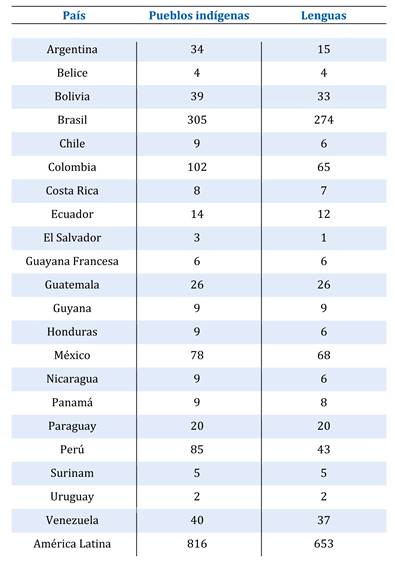 Para despertar la importancia del arcoíris lingüístico que existe al interior de estos pueblos en relación con el tema de la ética de la investigación, véase la siguiente tabla 1 de pueblos indígenas, así como la cantidad de lenguas que perviven en América Latina.