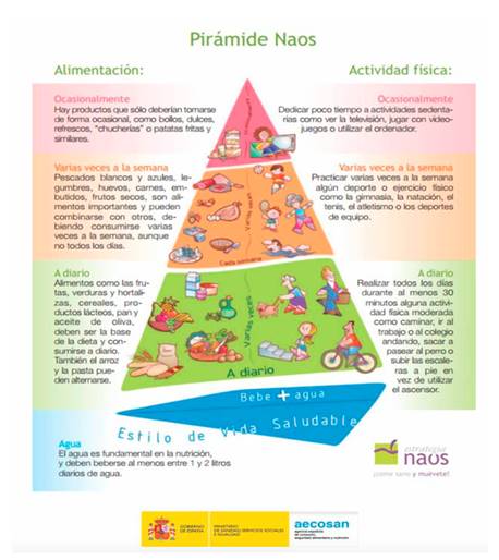 En la Figura 1 se puede observar la Pirámide NAOS, en la cual se menciona que el consumo de refrescos, en los que se incluirían las bebidas azucaradas, sólo se deben consumir ocasionalmente. Por consiguiente, su posición en la pirámide se sitúa en la cúspide.