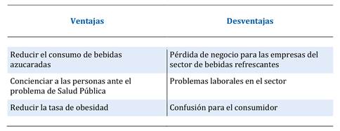 Toda medida aplicada para luchar contra un problema como es en este caso la obesidad siempre tiene asociado unas ventajas y unas desventajas como las que se recogen en la Tabla 2.