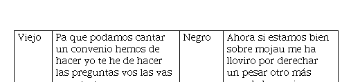 4. Lo negro con sentido negativo, incluso picaresco: 10, 13 y 15 (3 ítems). Si bien poseen un sentido negativo y picaresco, los términos negro/a y morena no son utilizados de modo despectivo per se, sino que indican una relación amorosa y/o de pareja. Incluso en el último, lo moreno/afro y lo rubio/caucásico son nivelados con idéntica negatividad ante la juventud. Lo picaresco se presenta en el doble sentido de victimización relacionado a lo festivo (10), en la tensión (13) y el deseo sexual (15).