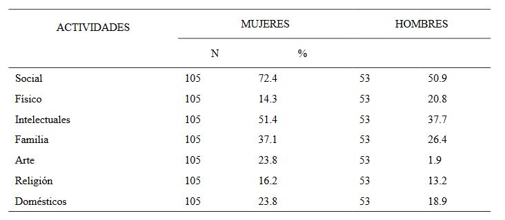 La Tabla 3 muestra las correlaciones entre las actividades de ocio y distracción y los dominios del instrumento de calidad de vida - WHOQOL BREF para analizar y comparar su relación con el género. Es importante destacar que el dominio 1 se refiere a los aspectos físicos; el dominio 2, a los psicológicos: el 3, a las relaciones sociales, y el dominio 4, a los aspectos del medio ambiente relacionados con la calidad de vida. Los resultados mostraron correlaciones significativas entre las actividades sociales y el dominio psicológico, social y medio ambiental, respectivamente, en las mujeres.