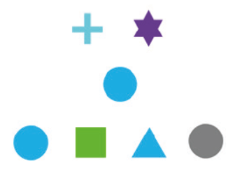 Test 1. Consisted of 24 trials of form similarity, 12 of which corresponded to the intra-modal test, where the relevant dimensions of stimuli were color and shape (see Figure 2); the test corresponded to the extra-modal test, where the relevant dimensions were shape and size (see Figure 3). Stimulus arrangements were the same for both groups and were shown randomly. Participants were not notified whether their response was correct or incorrect. The instructions in all of these tests were: