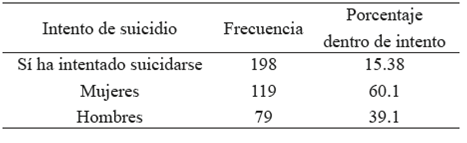 Of the 1287 young people who answered the question "Have you ever tried to commit suicide" 15.38% (198 students) state that they have done so, a fact that is relevant (see Table 3).