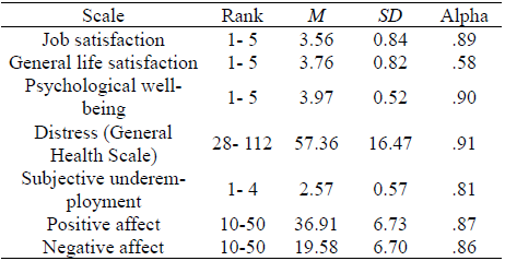 Keywords: subjective underemployment, job satisfaction, well-being, distress, effort-reward imbalance.