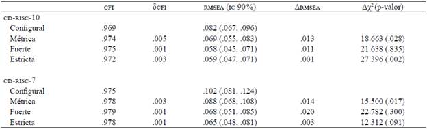 Evidencias de la invarianza de medición de la CD-RISC-10 y CD-RISC-7