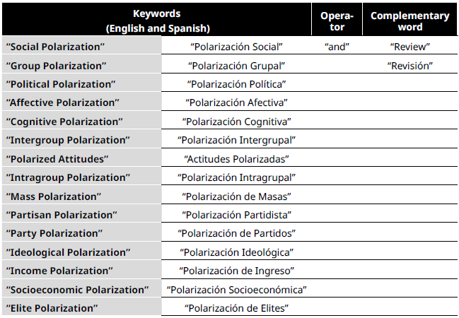 Palabras clave: Polarización grupal, polarización política, polarización social, PRISMA.