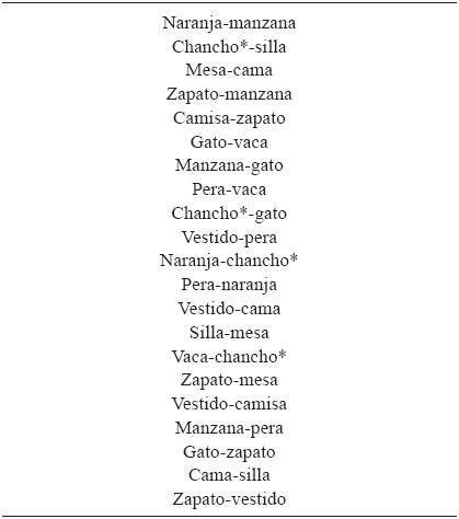 Estímulos que conforman la tarea de relaciones taxonómicas
