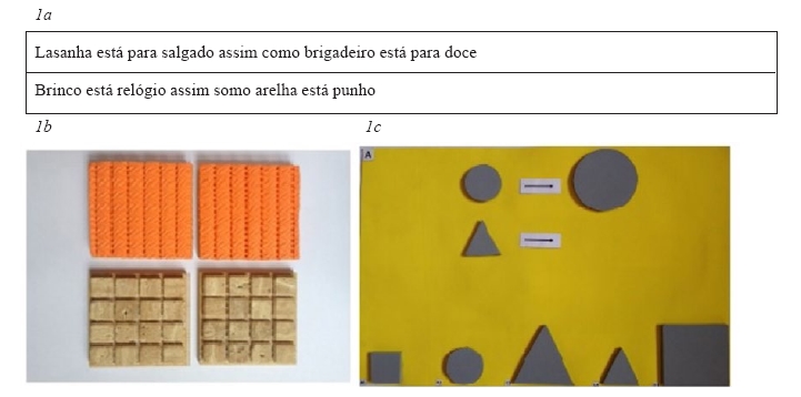 O processo de instruções buscou considerar a dificuldade da criança em relação ao espaço onde se encontrava o material, de modo que um cuidado pertinente foi tomado, optando-se pela condução da mão da criança cega, de modo a indicar o local onde a primeira figura de cada item se encontrava. Dando procedimento ao processo de instruções, foi mostrando como a sequência seguia e depois indicando o local onde se localizavam as alternativas. Foi possível perceber que, em alguns casos, a criança cega tateava a relação e respondia oralmente qual seria a figura correspondente, antes de verificar as alternativas existentes.