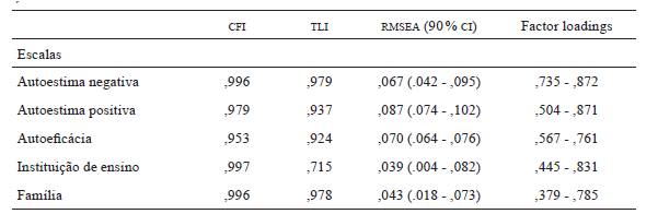 Antes de testar o modelo proposto (figura 1), identificou-se que todas as escalas avaliadas apresentaram índices de ajuste adequados (tabela 4).