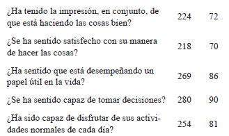 Para esta investigación las opciones de respuesta de las escalas se redujeron a dos (sí/no).