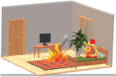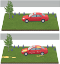 En la fase tres (historia principal), a cada niño en ambas condiciones se le presentó la historia de uno de los miembros del grupo mencionado. En la narración se mostró al personaje realizando tres acciones antisociales en secuencia. Las tres acciones hacían referencia a eventos que involucraban daños a la propiedad ajena, cada una de estas fueron acompañadas de dos imágenes de soporte que ilustraban un antes y un después de la acción del personaje (véase figura 2). En la primera imagen se mostraba un lugar organizado y en la segunda desorganizado. Al lado de cada escena se mostró la imagen del personaje autor de las acciones narradas; se utilizó siempre la misma imagen. El propósito de esta fase fue mostrar la historia de un personaje con una clara disposición moral de valencia negativa y constantemente referenciado como miembro de un grupo humano, según la condición del estudio un tut o un ojiverde. Al finalizar la historia se le pidió a cada niño contar las cosas que había hecho el protagonista del relato. Al igual que en la fase anterior, si un niño tenía dificultades recordando los hechos se le volvía a narrar la historia completa para luego pedirle que contara lo que había sucedido. Solo aquellos niños que contaban los tres eventos de forma correcta podían pasar a la última fase del estudio.