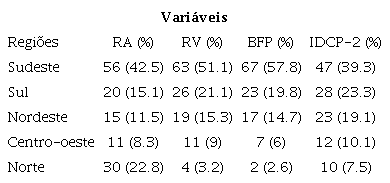De acordo com a tabela 1, a maior parte dos participantes da pesquisa se concentrou na região Sudeste (47.5 %), sendo o estado de São Paulo que apresentou maior número de respondentes (25.5 %) e o único estado brasileiro que não respondeu a pesquisa foi o Amapá.