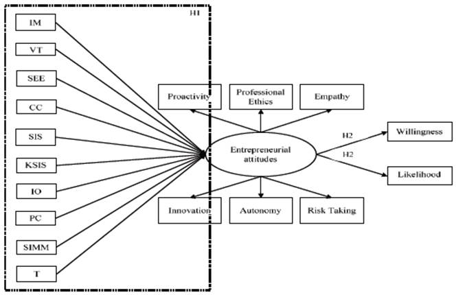 Evidence on these hypotheses is limited to date and as far as we know. Thus, the aim of this study is to test the predictive power of several learning strategies on the entrepreneurial attitudes in connection with entrepreneurship intention (willingness and likelihood) of a sample of Peruvian undergraduate students. Consequently, the hypotheses are: