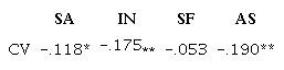 Analisando as correlações entre o suporte social e a cibervitimização (tabela 1), verificou-se que existe associação entre todas as variáveis à exceção da relação cibervitimização e satisfação com a família. Assim, a cibervitimização correlaciona-se de forma fraca e negativa com a satisfação com os amigos (rs = -.118; p = <.05), a intimidade (rs = -.175; p = <.001) e atividades sociais (rs = -.190; p = <.001).