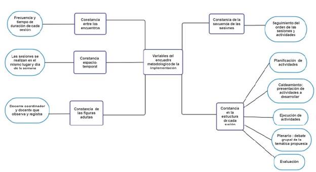 Variables del encuadre metodológico de la implementación: el manual del PHpV sugiere a los docentes efectores mantener condiciones de implementación constantes, las cuales se presentan a continuación: