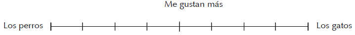 y usted siente más afinidad por los perros, marque una X en el lado más cercano a esta opción, dependiendo de qué tanta afinidad tiene (entre más cercana la X a la etiqueta se entiende que el nivel de preferencia por la misma será mayor).