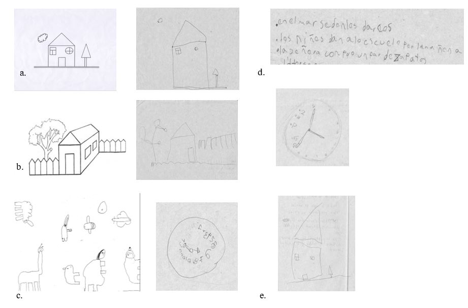 Como era de esperarse, los niños menores presentaron mayor número de errores, pues se encuentran en el desarrollo y apropiación de sus habilidades espaciales. Algunos ejemplos de los tipos de errores espaciales en la ejecución de tareas gráficas se muestran en la figura 1.