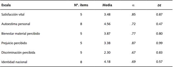 Palabras clave: satisfacción vital, autoestima, bienestar material, prejuicio, identidad nacional, migración.