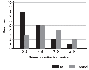 La información sobre el número de comorbilidades por participante se encuentra resumida en la Figura 1. Los medicamentos concomitantes en uso por persona en el momento de la inclusión pueden observarse en la Figura 2.