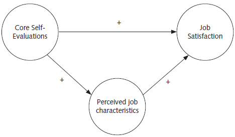 Regarding the mediating role of job characteristics in particular, previous studies conducted in Anglo-Saxon contexts have suggested that employees with higher CSES tend to perceive and experience their job in a more positive way (i.e., CSES seem to enhance individuals' appraisals of work situations), which, in turn, has been found to be associated with increasing job satisfaction (Cohrs, Abele, & Dette, 2006; Judge et al., 2017; Judge et al., 2000). On the contrary, those individuals with lower CSES tend to perceive their job as more stressful, which is likely to lead to the experience of strain and job dissatisfaction (Brunborg, 2008; Harris, Harvey, & Kacmar, 2009; Judge et al., 2012; Kammeyer-Mueller et al., 2009; Kluemper, 2008; Sunal, Sunal, & Yasin, 2011). In spite of this evidence, research on the mediating effects of job characteristics has produced inconsistent results (see Chang, Ferris, Johnson, Rosen, & Tan, 2012; Hsieh & Huang, 2017), suggesting that more research efforts are needed in order to improve our understanding of the mechanisms underlying the CSES - job satisfaction relationship. Moreover, the majority of prior studies on this matter have focused on a relatively narrow set of intrinsic work factors (i.e., those relating to the individual's tasks; e.g., Hackman & Oldham, 1976), neglecting, to a considerable extent, the effects of extrinsic work factors (i.e., those relating to the organizational, social, and physical conditions in which tasks are performed) that are also highly relevant for explaining individuals' job satisfaction (Dierdorff & Morgeson, 2013; Ferguson & Cheek, 2011; Humphrey, Nahrgang, & Morgeson, 2007; Morgeson & Humphrey, 2006).