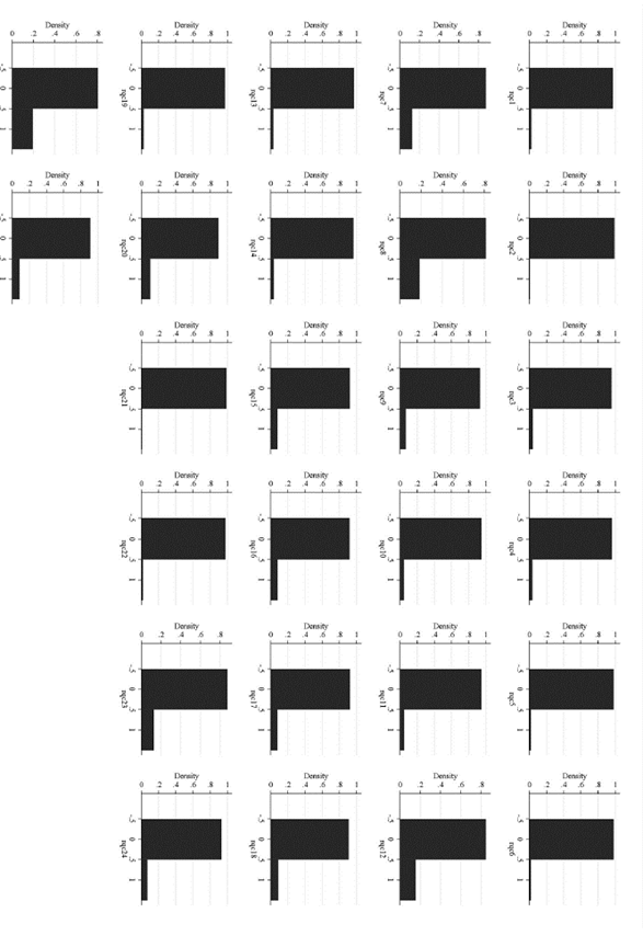 Table 3 summarizes item discrimination and location parameters for the 2pl-iRT model fitted to the data. Consistent with the findings from CTT, items have high location parameters, ranging from 1.31 (item 12, "Have you noticed that the child has difficulties making friends of his or her same age?") to 4.71 (item 25, "Is the child eating too little and losing weight?") standard deviations above the mean. Furthermore, there is a larger dispersion in the estimated discrimination, ranging from 0.3 (item 25) to 2.54 (item 24, "Do you think the child is overeating for his age?"). Nonetheless, in general, most items have as parameters above one, suggesting that they distinguish among children with different levels of mental health problems. Figure A2 presents Item Characteristic Curves (ICC), where higher location parameters shift the ICC to the left, and a steepest slope reflects a higher discrimination parameter.