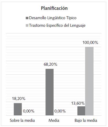 La planificación también ha sido estudiada con relación a los TEL. Esta función permite la integración, secuenciación y desarrollo de una serie de pasos para lograr conseguir una meta (Fernández, 2016). Dado su grado de complejidad, se describe como una función ligada al funcionamiento de la MT (Tirapu-Ustárroz, García-Molina, Luna-Lario, Roig-Rovira, & Pelegrín-Valero, 2008). González (2019) estudia precisamente las implicaciones de esta relación entre MT y planificación, comparando los tiempos de ejecución de estudiantes entre 6 y 8 años con y sin TEL en una tarea de planificación. Los resultados muestran diferencias significativas favorables a los estudiantes con desarrollo típico. La autora concluye que el tiempo de ejecución se ralentiza para los niños con TEL en tareas que requieren planificación con alta demanda de la MT. Por otra parte, para que la planificación sea exitosa, se presume que los individuos deben manejar habilidades de secuenciación y gestión del tiempo, así como tener una visión general del todo y las partes que lo constituyen (Moraine, 2014). Este conjunto de habilidades tendría como finalidad que las personas sean capaces de prever las consecuencias de las posibles respuestas ante determinadas situaciones, logrando así determinar el mejor plan de acción necesario para cada contexto al que se enfrenten (Papazian & Luzondo, 2006). En un estudio realizado con preescolares (Roello, Ferretti, Colonnello, & Levi, 2015), en el que se evaluaban diversas FE, entre ellas la planificación, los investigadores mostraron que niños y niñas con TEL obtuvieron resultados significativamente más bajos que sus iguales con DLT. Roello et al. (2015) demostraron además que la relación entre las disfunciones ejecutivas y los TEL comenzaba a desarrollarse tempranamente, evidenciándose ya diferencias entre dos grupos etarios de preescolares. El estudio subraya la importancia de una evaluación temprana de las FE con objeto de detectar posibles diferencias en el desarrollo emergente de estas habilidades.