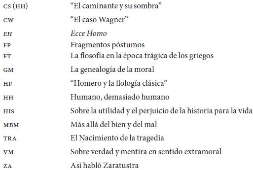 Nietzsche, F. Fragmentos póstumos. Ed. y Trad. Germán Meléndez. Bogotá: Editorial Norma, 1992.
