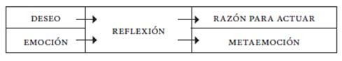 Es en este sentido en el que asimilo el concepto de metaemoción con la noción de deseo de segundo orden respecto a las emociones. Esta ampliación de la perspectiva de Frankfurt puede esquematizarse de la siguiente manera: