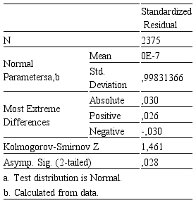 Os pressupostos da análise de regressão linear foram testados e respeitados neste estudo. A ausência de autocorrelação serial é verificada no teste de Durbin-Watson, cujos valores são adequados quando estão abaixo de 2 (Corrar, Paulo & Dias Filho, 2014). A Tabela 4 apresenta o resultado deste teste com valor de 1,753, considerado apropriado. A multicolinearidade é analisada a partir dos resultados do teste VIF, com números abaixo de 10 e “Tolerance” até 1, indicativos de ausência de multicolinearidade ou valores aceitáveis. A normalidade dos resíduos foi atestada pelo teste Kolmogorov-Smirnov, com resultados na Tabela 7, não rejeitando a hipótese nula que afirma a normalidade.