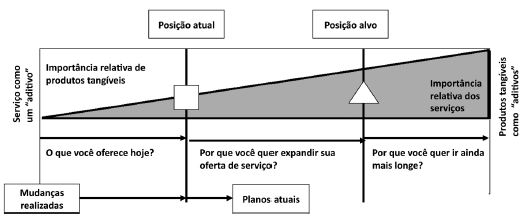 Oliva e Kallenberg (2003) pensaram nas empresas se movendo ao longo desse eixo à medida que incorporavam mais serviços relacionados aos produtos. No extremo, imaginaram uma organização de serviço na qual seus produtos seriam apenas uma pequena parte de sua proposta de valor.