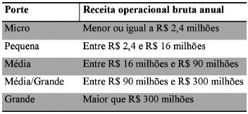 Uma segunda análise se deu em relação ao porte das empresas em cada um dos grupos de acordo com a receita operacional bruta anual. O resultado é apresentado na Tabela 4.