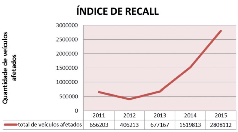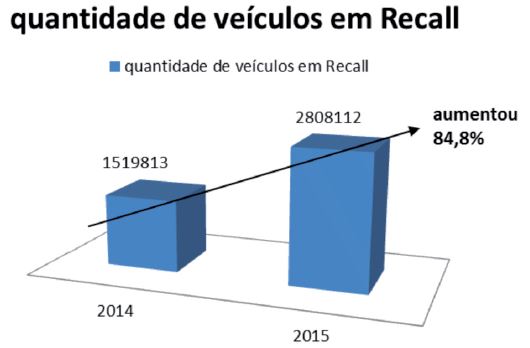 A quantidade total de veículos, afetados em Recall, aumentou em 84,8% de 2014 a 2015 e, nos últimos quatro anos, seu aumento foi consecutivo, totalizando 591% (PROCON, 2016).