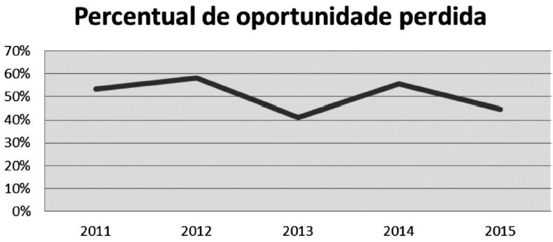 Com as realizações dos Recall, dos últimos cinco anos, e a não aplicação de ferramentas como o ECN2, com potencial de bloqueio das não conformidades dos componentes técnicos defeituosos, um elevado índice de oportunidade perdida se apresenta nesse cenário real. A figura 6 apresenta esse percentual.