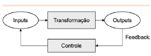 A Teoria Geral de Sistemas, de Karl Ludwig Von Bertalanffy, apresentado nos idos de 1960, teve seus estudos iniciais com o metabolismo, levando em conta o sistema biológico em interação com o ambiente. Esses estudos, realizados na Alemanha e nos Estados Unidos, eram divergentes à visão cartesiana de mundo e de ciências divididas, uma abordagem que proporciona percepção maior de organização e elementos constituintes, o que melhora o conhecimento dos membros em relação à empresa e tende a tornar ambos mais fortes, com a fundamentação de interdependência de subsistemas para o funcionamento de um sis tema, não podendo os tratar isoladamente. (Batista, 2014, p. 3). A motivação da Teoria Geral de Sistemas pode ser descrita como identificar as propriedades, princípios e leis característicos dos sistemas em geral. “A Teoria Geral dos Sistemas não busca solucionar problemas ou tentar soluções práticas, mas sim produzir teorias e formulações conceituais que possam criar condições de aplicação na realidade empírica” (Andrade, 2011, p. 176). Assim, para a plena compreensão do sistema deve se entender seus elementos como um todo e suas interações. Observando-se o enfoque sistêmico, e o transportando para um processo produtivo, utilizando uma percepção aplicável à maciça maioria dos processos, temos o demonstrado na figura 2: