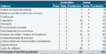 O comparativo de resultados, disposto na tabela 1, demonstram larga vantagem para o software proposto. Para fins de pontuação de cada item, os valores quantitativos foram convertidos para uma pontuação de 0 a 10, por parâmetros definidos pela equipe de engenharia. A conversão está disponível na sessão de apêndices.
