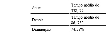 O resultado dessa diferença apresenta claramente o que ocorreu depois da implantação do quadro no setor: houve aproximadamente 60% de diminuição no tempo médio de realização das tarefas de 2016 em comparação com 2015. Ressalta-se que esse resultado de estabilidade pode ser atribuído ao controle visual do quadro.