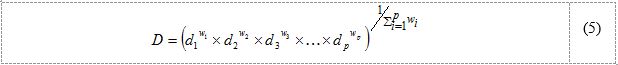De acordo com Derringer (1994) pode-se utilizar (5) ao invés de (4) na determinação do valor da função utilidade global, com a possibilidade de atribuir-se pesos de importância para cada função utilidade: