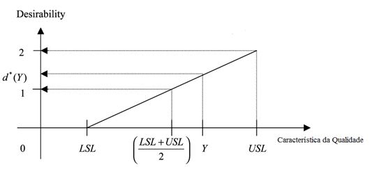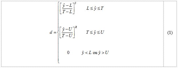 Quando o valor alvo (T) de uma resposta está entre um valor máximo (U) e um valor mínimo (L), como mostrado na Figura 1, diz-se que a resposta é do tipo NTB com a correspondente função utilidade , que por uma questão de simplificação será aqui representada por d, podendo ser definida como em (1):