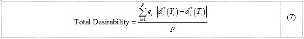 De acordo com Derringer e Suich (1980), a otimização das respostas envolvidas no estudo pode ser efetuada por meio da maximização da função utilidade global dada por (4):