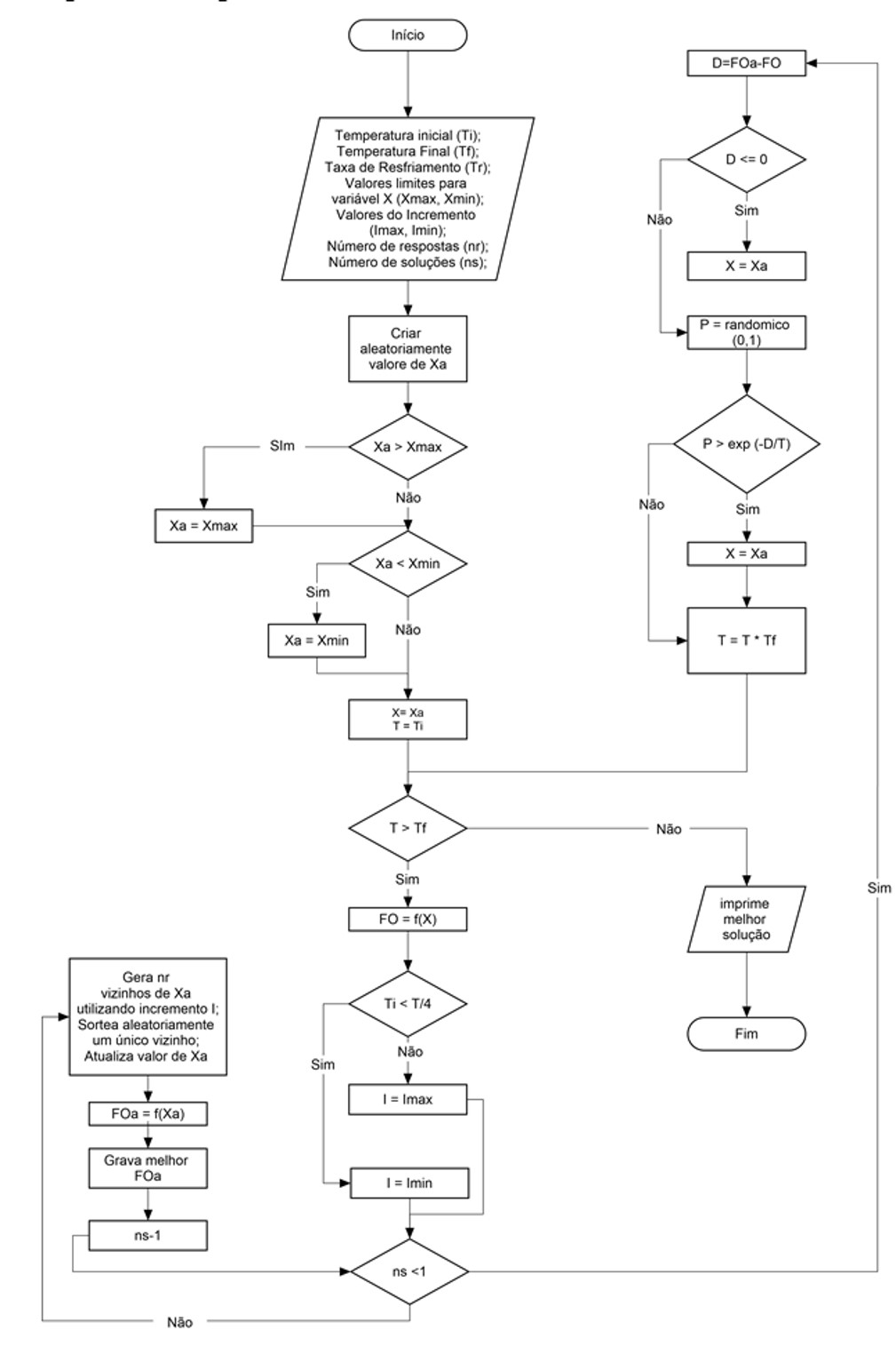 A metaheurística Recozimento Simulado (RS) foi implementada conforme o fluxograma demonstrado na Figura 5.