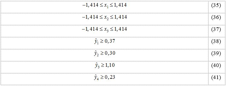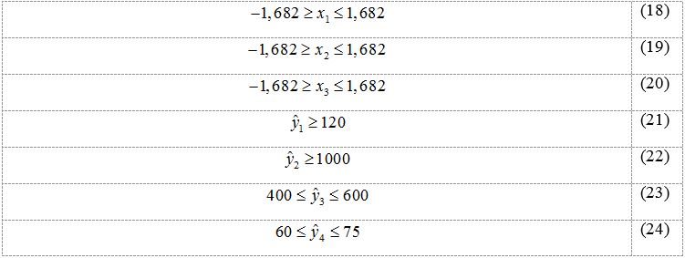 Os alvos para a otimização de cada resposta foram determinados pelos autores do trabalho no qual se baseia este estudo de caso, e são apresentados em (31-34):