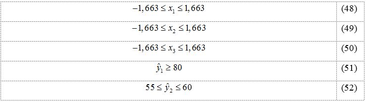 Os alvos para a otimização de cada resposta foram determinados pelos autores do trabalho no qual se baseia este estudo de caso, e são apresentados em (46-47):