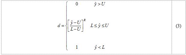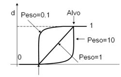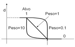 com sendo o valor obtido pela função utilidade individual para a resposta i, é o valor alvo da função utilidade individual, p é o numero total de resposta aglutinadas pela função, é o peso atribuído a resposta i; sabendo que .
