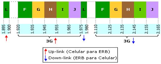 Outro aspecto importante na evolução da tecnologia 3G é a transição do CDMA para o OFDMA (Orthogonal Frequency-Division Multiple Access), com a implantação do LTE. O OFDMA possui melhor desempenho para bandas acima de 5 MHz. A Figura 2 apresenta as frequências de trabalho da tecnologia 3G no Brasil.