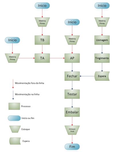 No setor TA, se agrega a peça TB com as demais matérias primas do processo dando origem a peça de TA. Finalmente a peça fabricada fica em espera para enviar ao setor de AP.