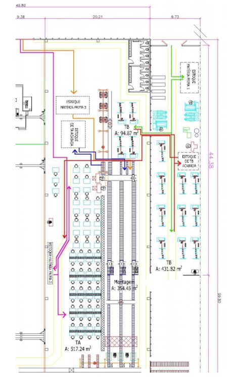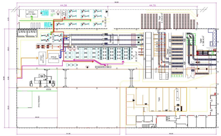 A seguir, figura 7, é mostrada a proposta do novo layout já com as modificações para os setores de TB, TA e montagem, podendo ser facilmente percebido o que foi descrito acima.